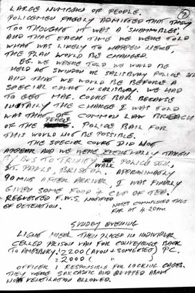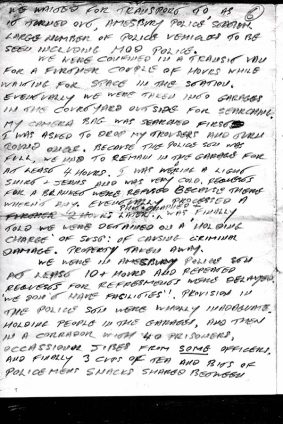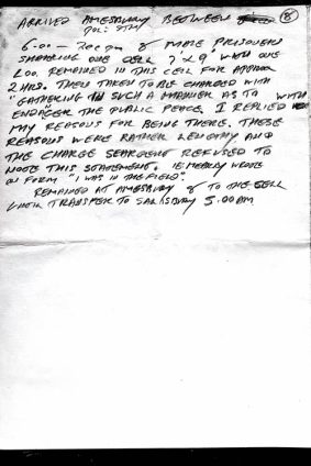 Included here, are copies of the notes i made after my arrest. Personally, i was detained at Amesbury, Salisbury, Bristol. I had asked the custody officer for paper and pen ( a right under the ‘Police and Criminal Evidence Act 1984’.) Without argument I was given some.