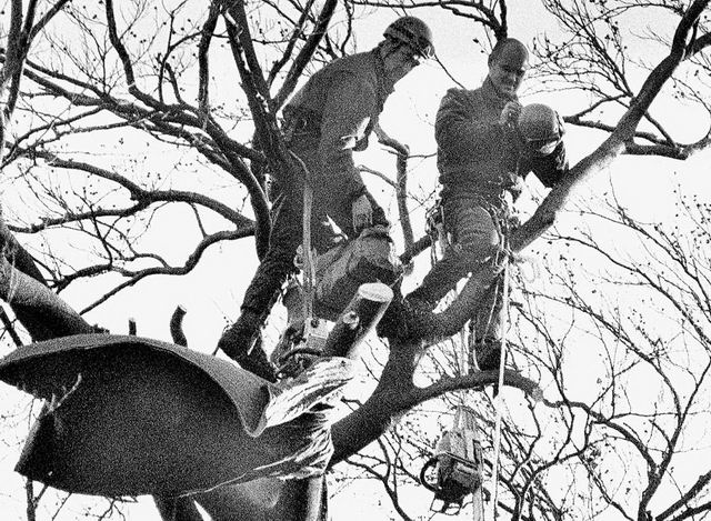 Rob was strolling around with the supervisor, discussing the eviction and trying to bargain for time for the trees.